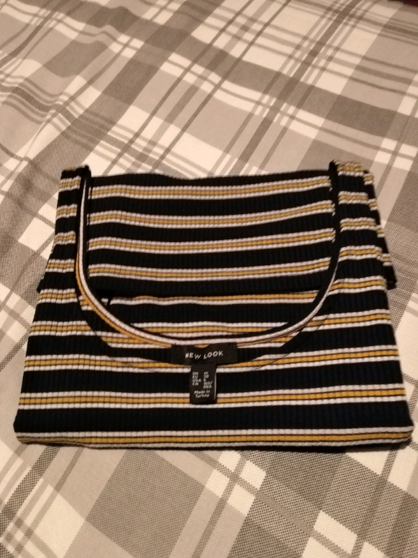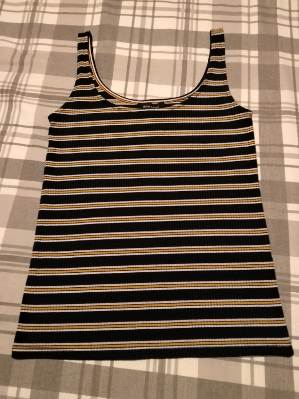 Ladies navy/white/yellow striped size 10 summer vest top. Bought from New Look for £11.99,removed tags, and it didn't fit. New condition and never been worn! Quite thick material and a little stretchy- doesn't go see through! No WhatsApp messages please. £5
