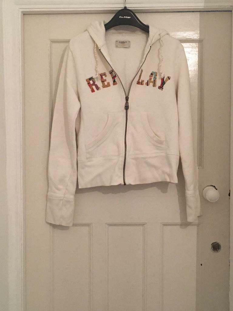 Lovely women’s replay off white zip hoodie top