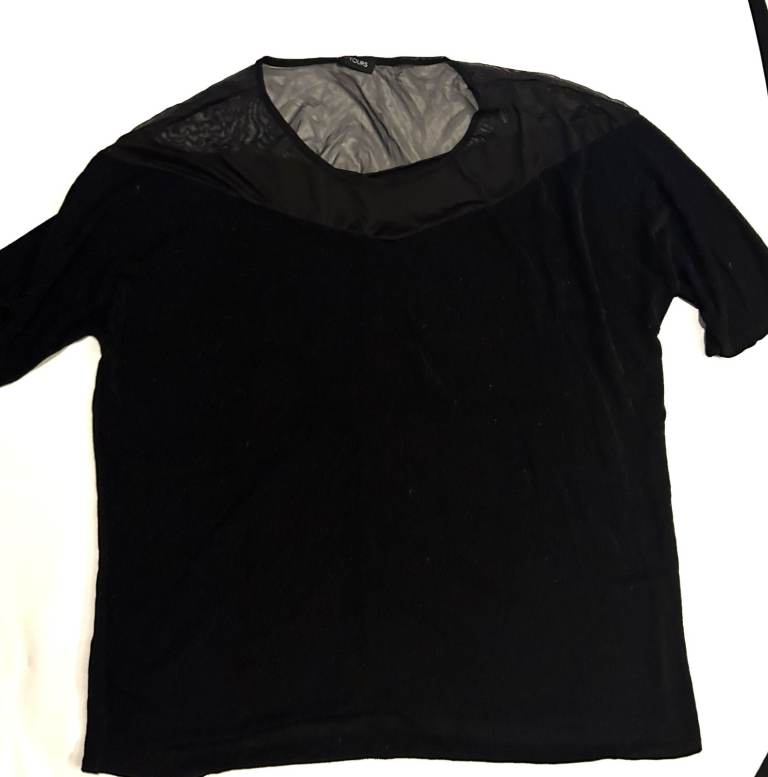 size 26/28 black top with glitter detail. By Yours