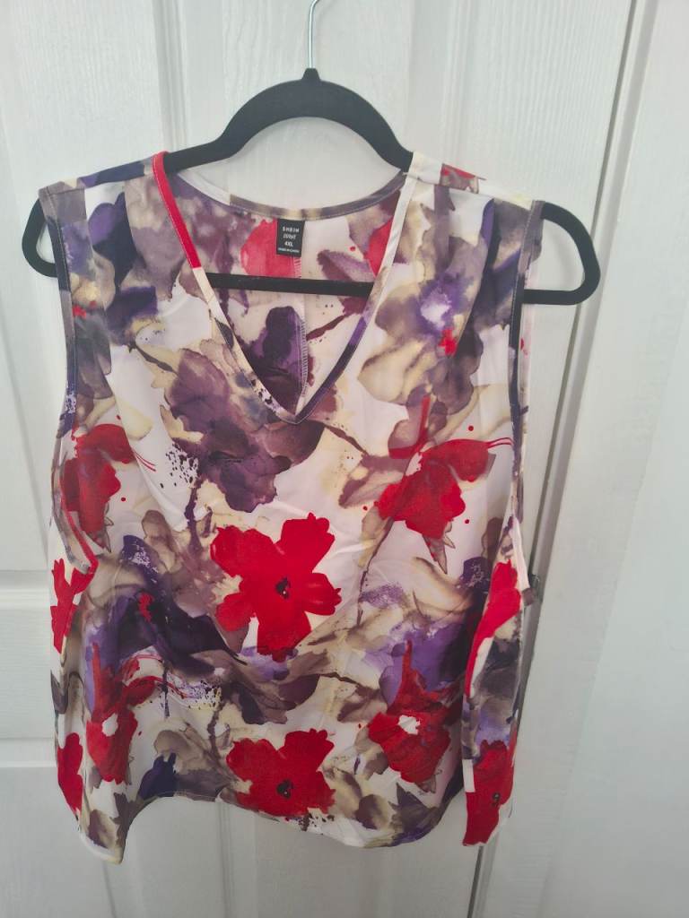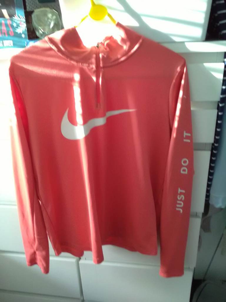 Summer top colour pink nylon with satin around neck and edge of sleeves new still has lable on size 14 very cool for Summer time or wear over t.shirt