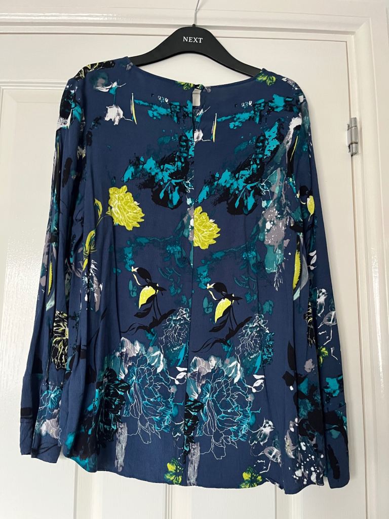 Long sleeved teal blouse abstract pattern