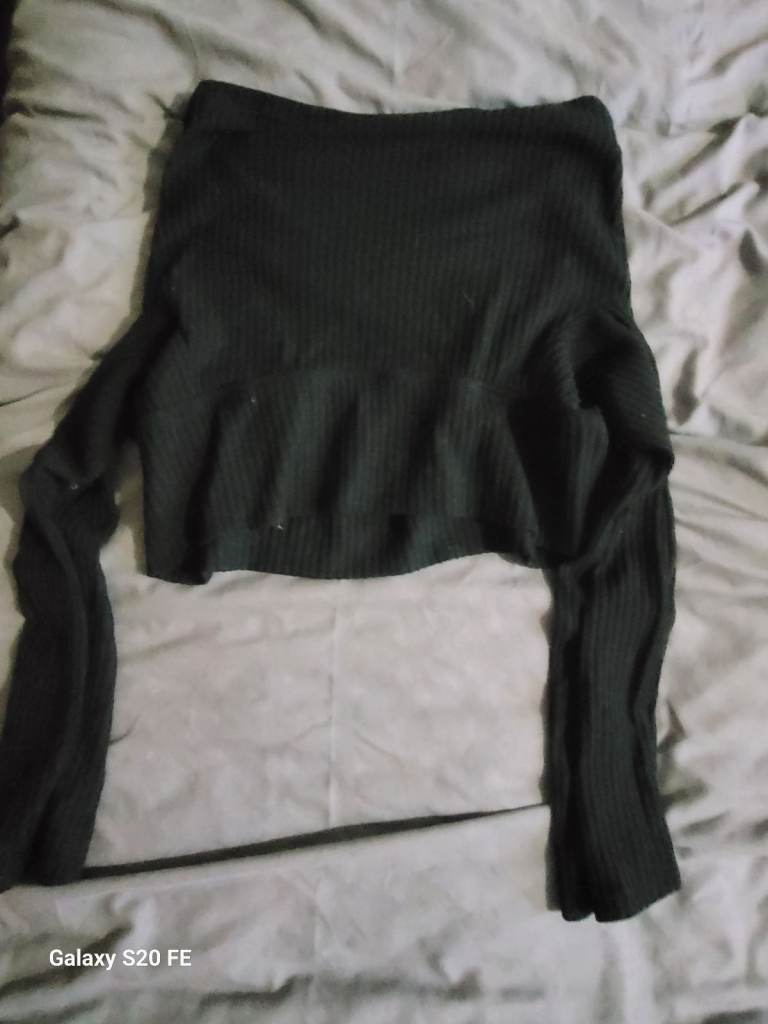 USED SHEIN Ribbed Black Long Sleeve Off Shoulder Crop Top L | Open to Offers!