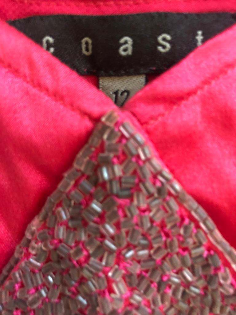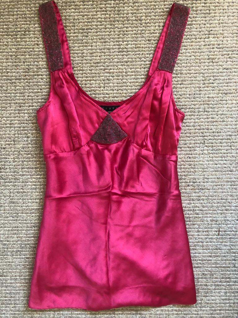 Cerise / pink / fuchsia satin with grey bead detail on straps and front centre