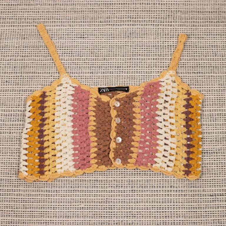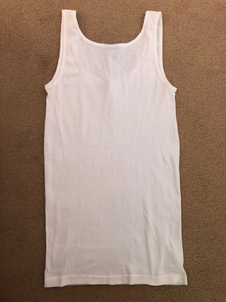 Women’s white long vest top with some sewn on embroidery at front. Approx. bust size unstretched is 80 cm. Approx. length is 69 cm. Material is 100 per cent cotton. It has not been worn just stored.