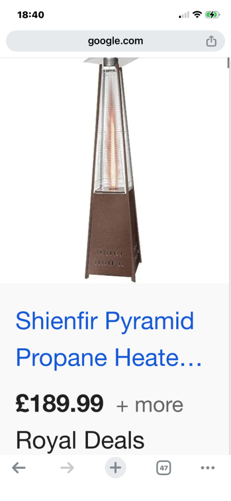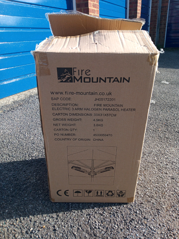 Posting for 13+ yearsElectric 3 arm halogen parasol heater -Fire Mountain Electric Parasol