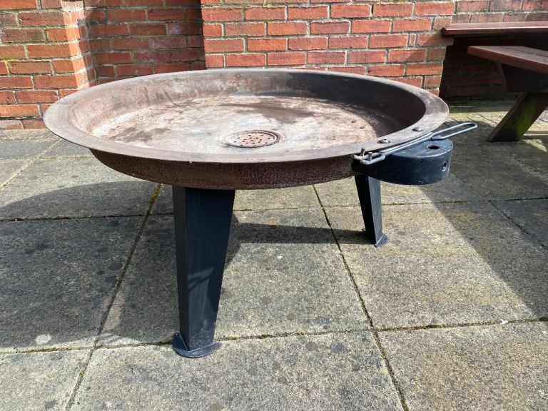 Large, sturdy steel fire pit in good condition.