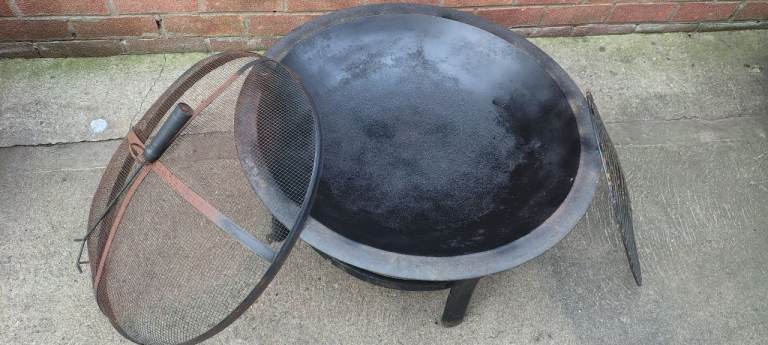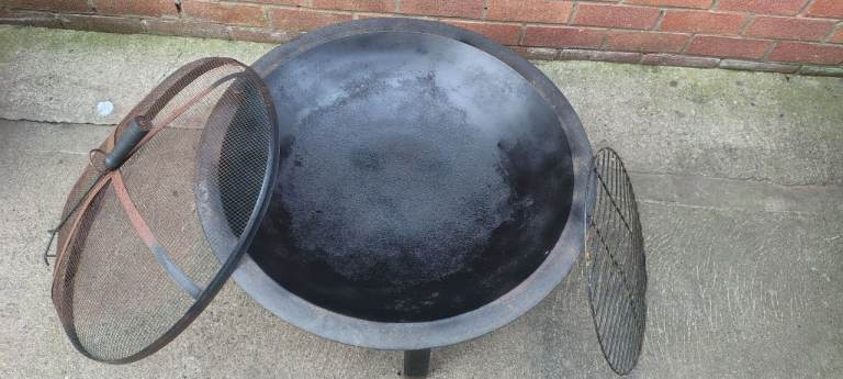 Hi, im selling a used fire pit, with a BBQ grill. In good used condition. Always used sand in the bottom of the pit to protect the metal. Recently coated with black spray paint to further preserve it against the elements.
