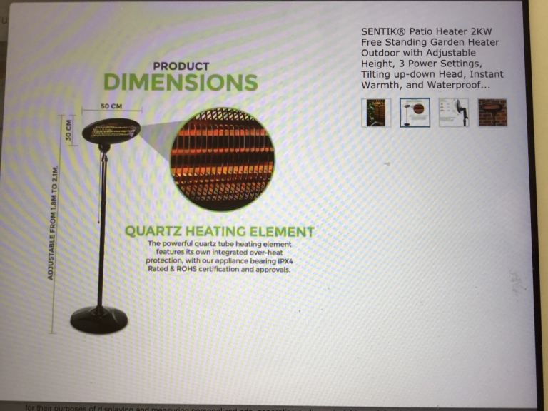 Famous brand SENTIK OUTDOOR ELECTRIC PATIO. HEATER. 2KW.