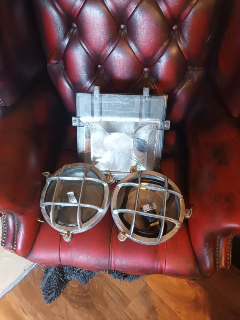 3 out door lights.unused two like portal silver with brass screws.ideal Garden lights one large square light 40pound for all no offers must be collected