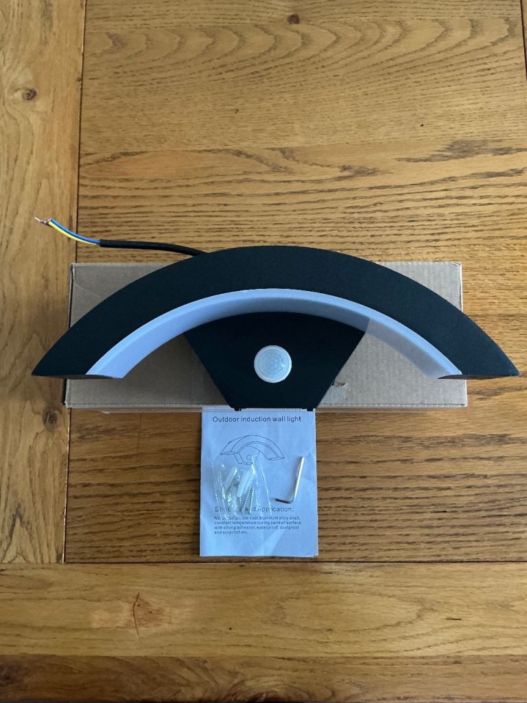 An outdoor LED waterproof porch light with motion sensor. Unused and in original packaging. I’m selling the light as it is not suitable for my requirements.