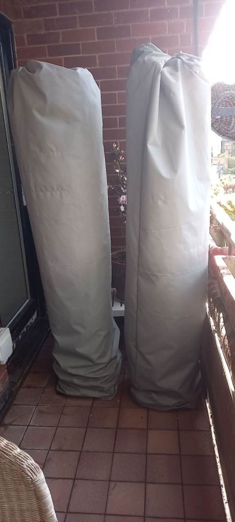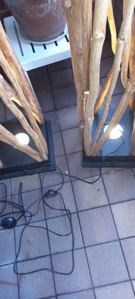 Two twig style uplighters - suitable for conservatory or covered patio - in good condition and working order. come with covers. Height 168 cms, 31cm square base.