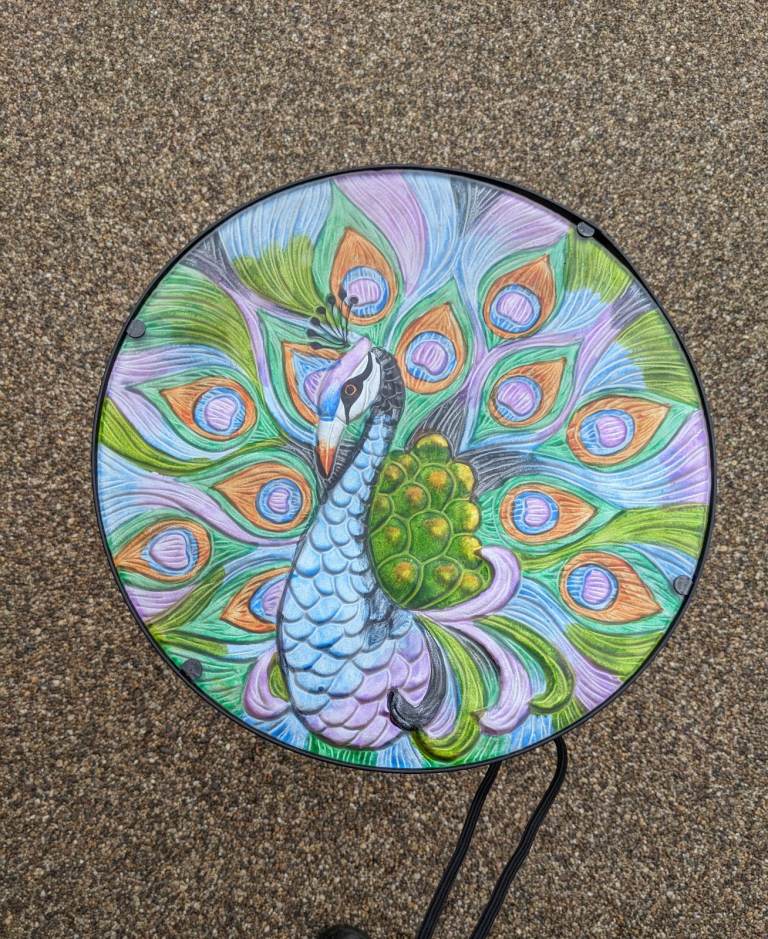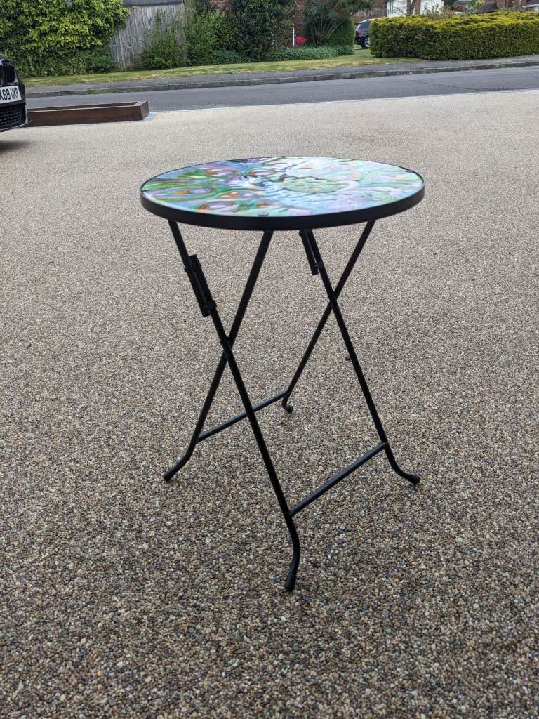 This small outdoor coffee table is a stylish addition to any outdoor space. With a round shape and a tabletop made of glass, it exudes a contemporary/modern style. Standing at 49.5cm tall and 14cm in length, it is perfect for serving up drinks and snacks while enjoying the outdoors. The multicoloured design adds a fun and vibrant touch to your patio or garden. Ideal for small spaces, this outdoor side table is both practical and visually appealing. Collection from Crawley, West Sx.