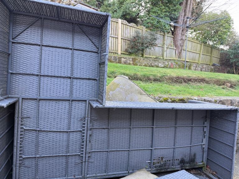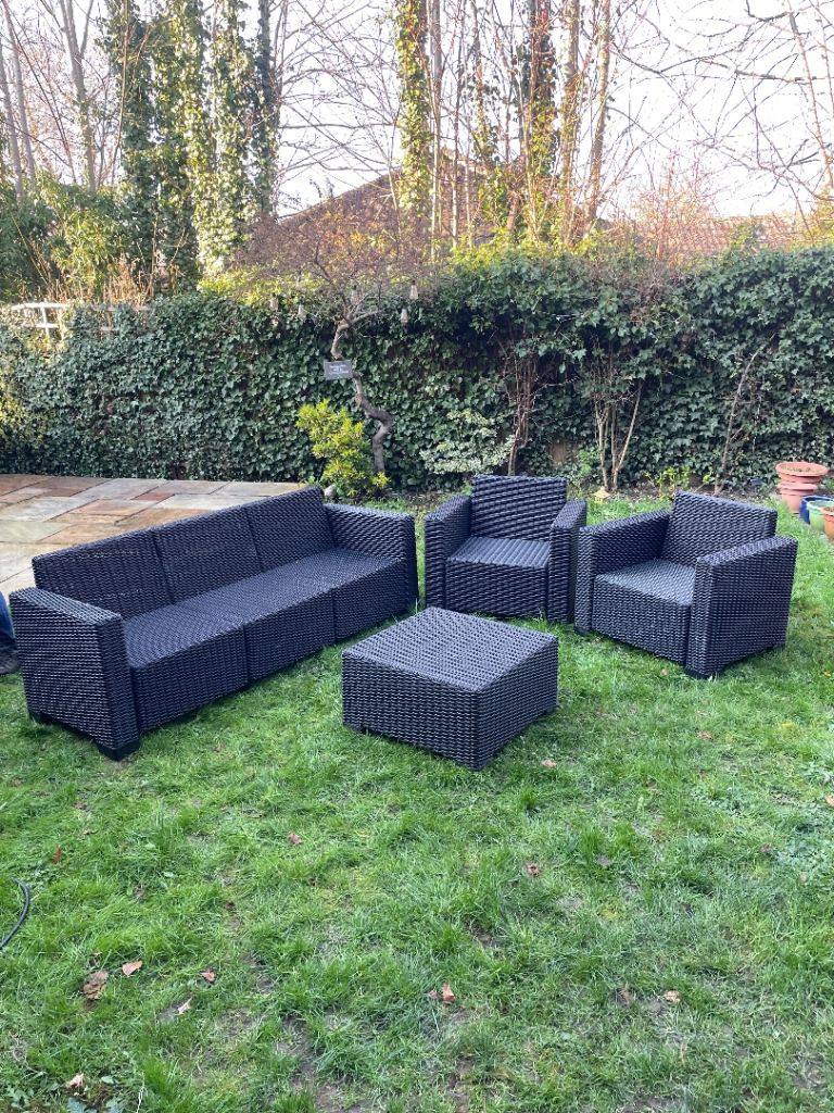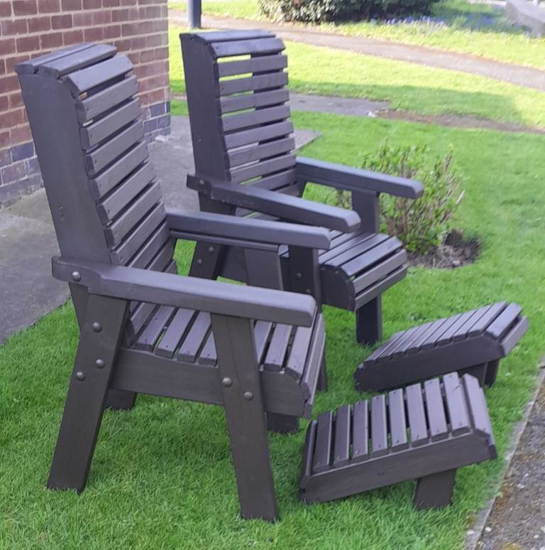 2 CHARLES TAYLOR CHAIRS AND 2 FOOTSTOOLS. GOOD CONDITION, AND NOT CHEAP WHEN NEW BARGAIN AT £80.