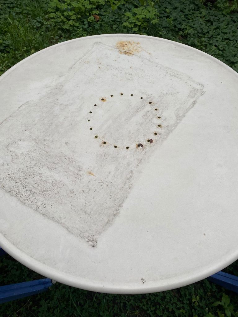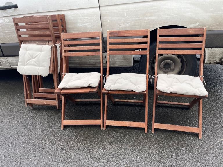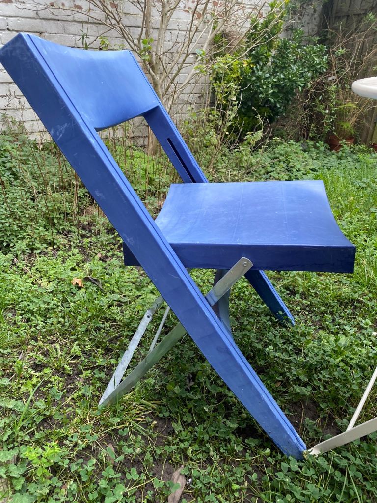 Selling 1 outdoor table and 2 folding plastic chairs.