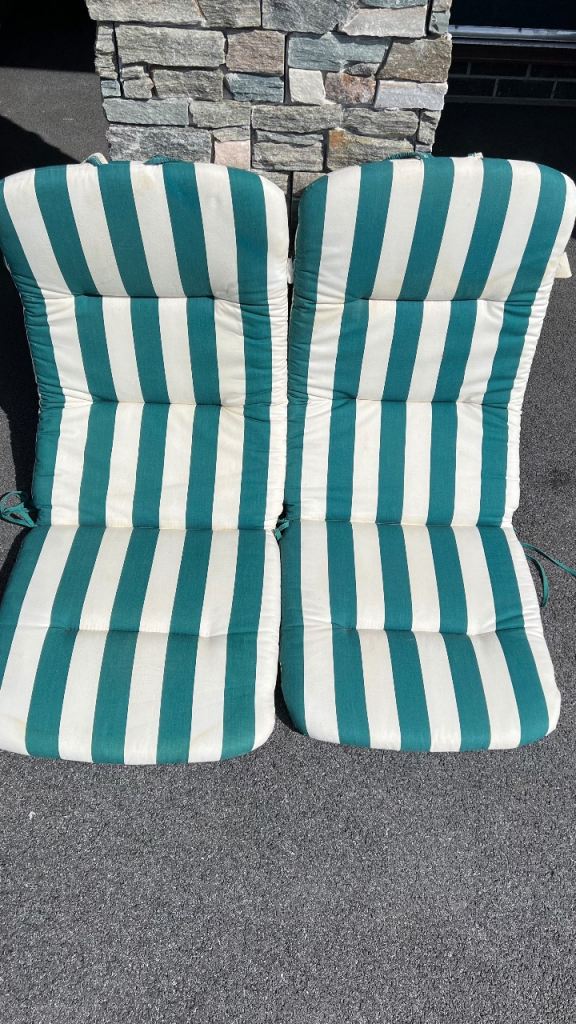 Posting for 2+ years2 M&S green and white striped garden chair cushions