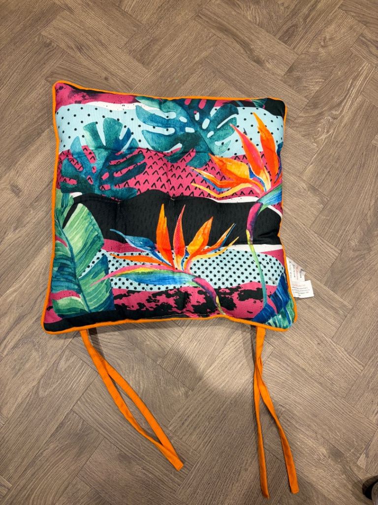 Seat pad has ties attached for further fixing.