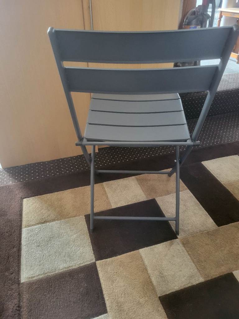2 x grey . Steel folding garden chairs. Brand new still in wrapping.