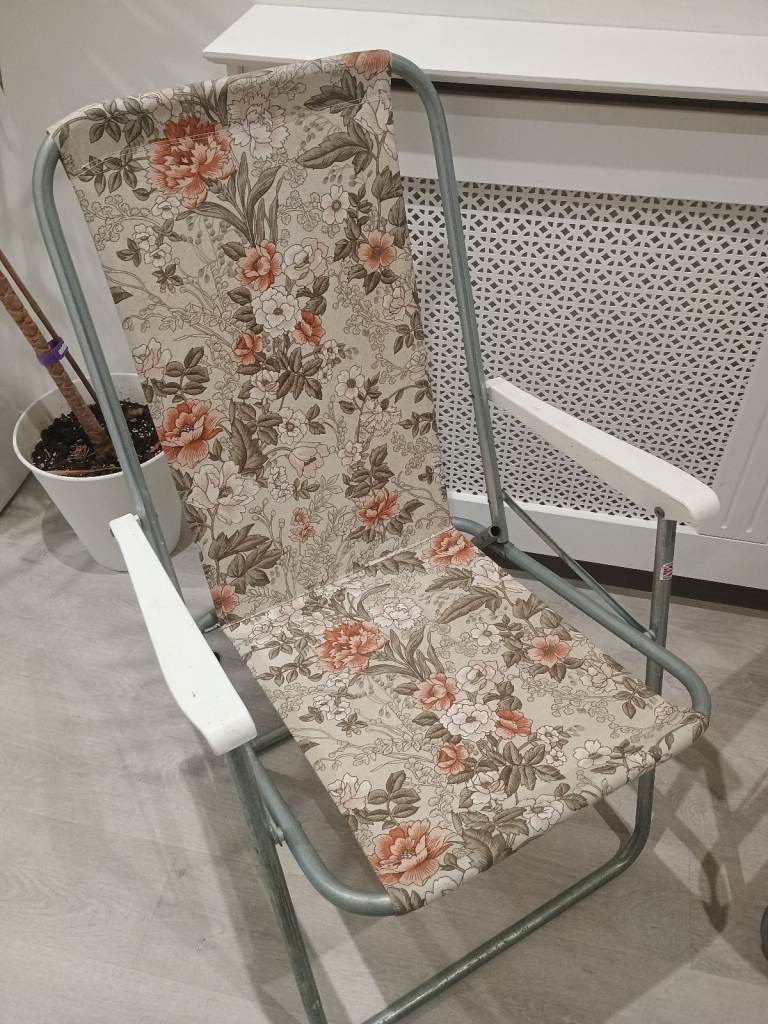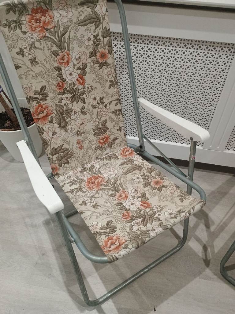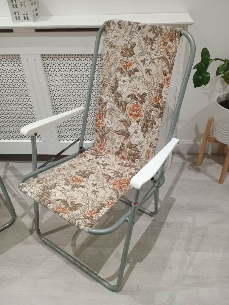 2 x Vintage Floral Folding Deck Chairs VW Camper Campervan Camping Retro Garden Set