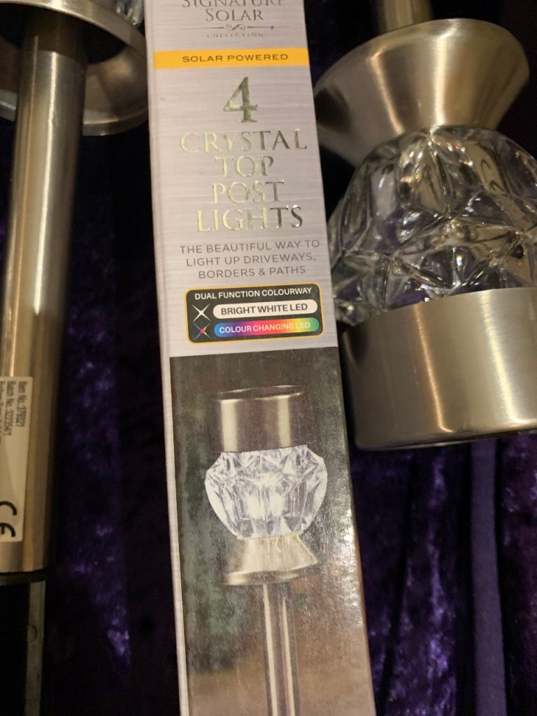 Crystal top post lights led bright white solar powered brand new in the box