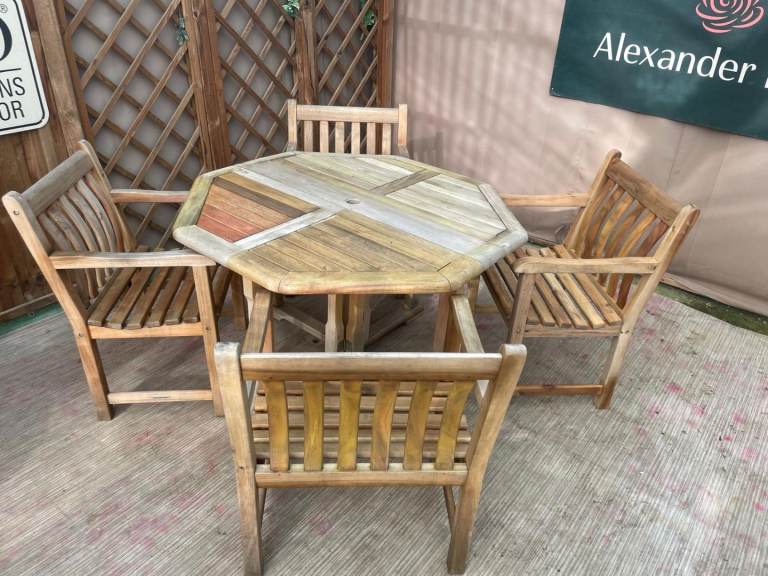 4 seasons outdoors teak basso table with 6 sussex chairs,now £599 to clear,collection crawley,local delivery and courier available