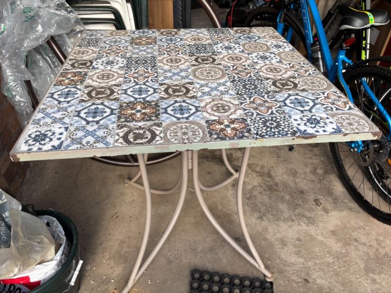 Posting for 10+ yearsBistro garden patio set. Four chairs and table. Two chairs not even out of packaging.
