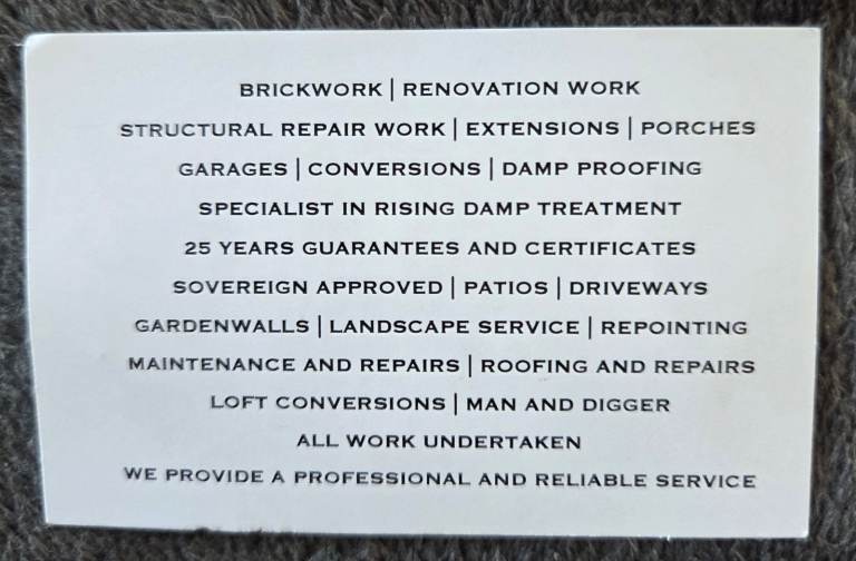 Call for free quotes , all aspects of brickwork, extensions , garages repointing , garden planters and a lot more