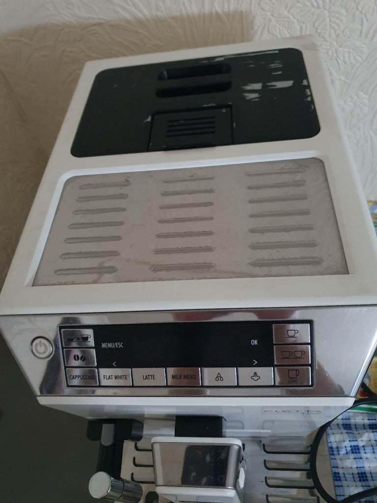 The De'Longhi Elleta coffee machine is a stylish and efficient bean-to-cup coffee maker, perfect for creating delicious cappuccinos at home. With its sleek white design and advanced features like self-cleaning, energy-saving mode, and programmable settings, this machine makes coffee brewing easy and convenient. The machine also includes components such as a drip tray, water tank, and water filter, ensuring easy maintenance and optimal performance. Used few times only.Like new.