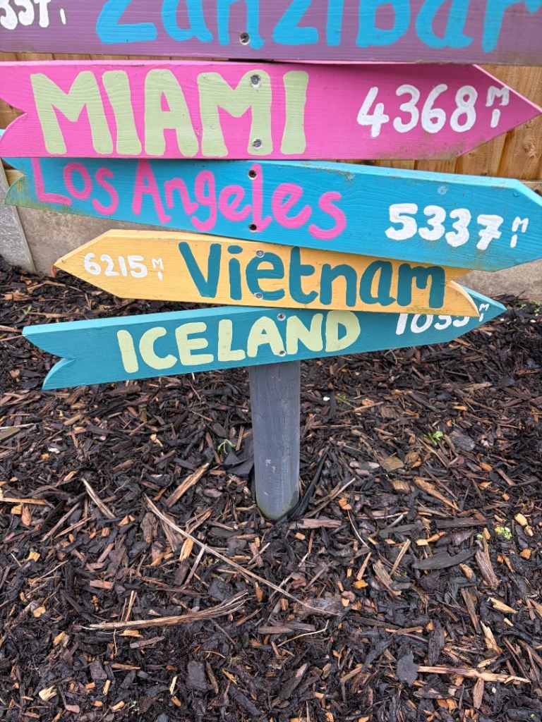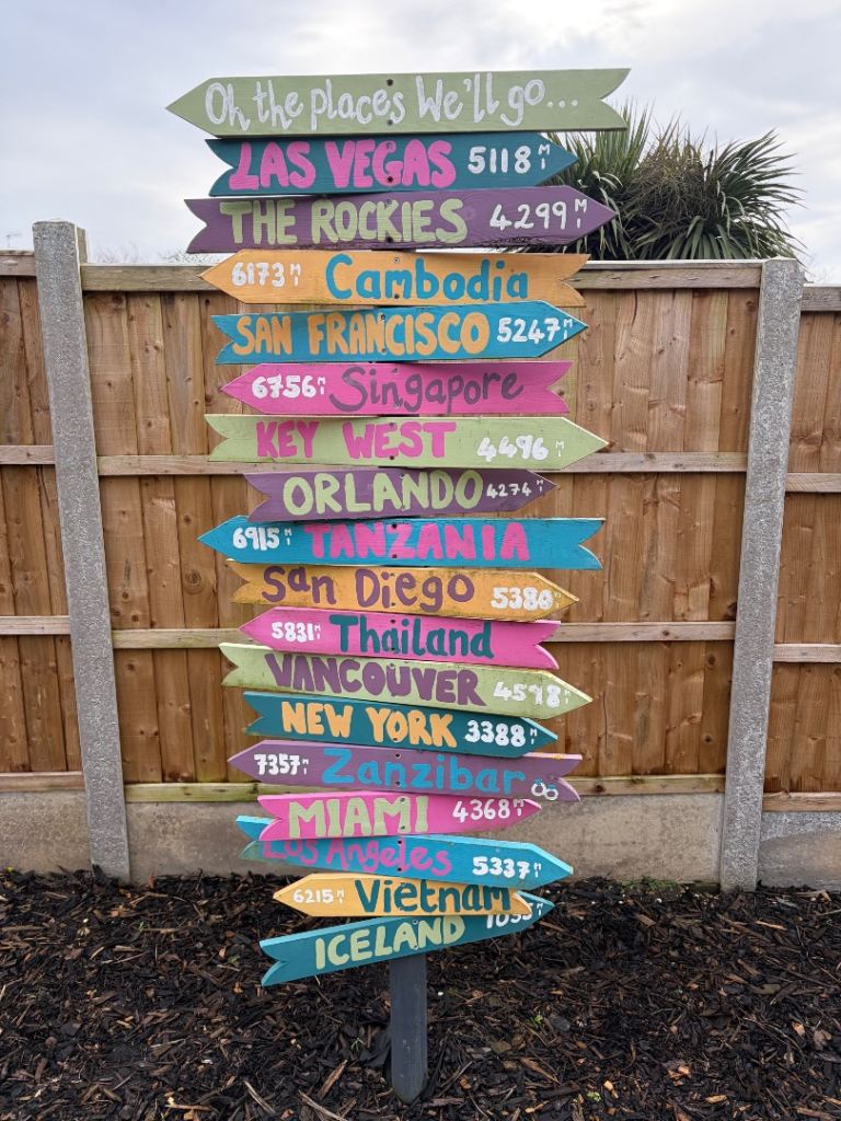 Colourful Wooden Travel Signpost - Garden Furniture - Pick up in NG5