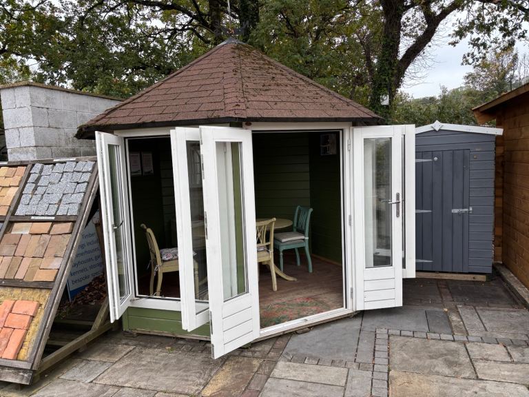 Ex Display 3mx3m Octagonal Sumnerhouse for sale. Great opportunity to grab this Lugarde Prima System summerhouse.