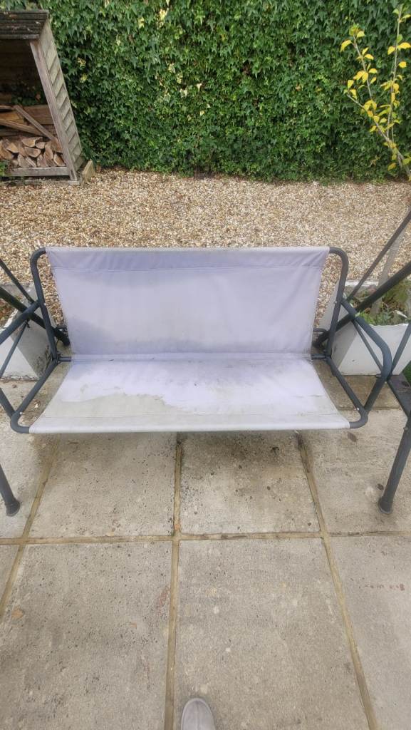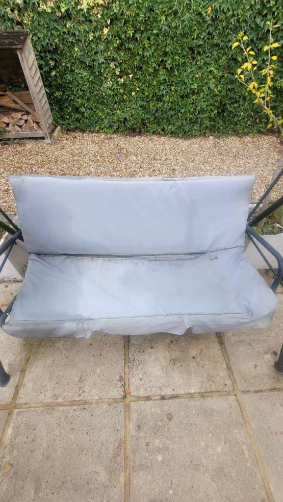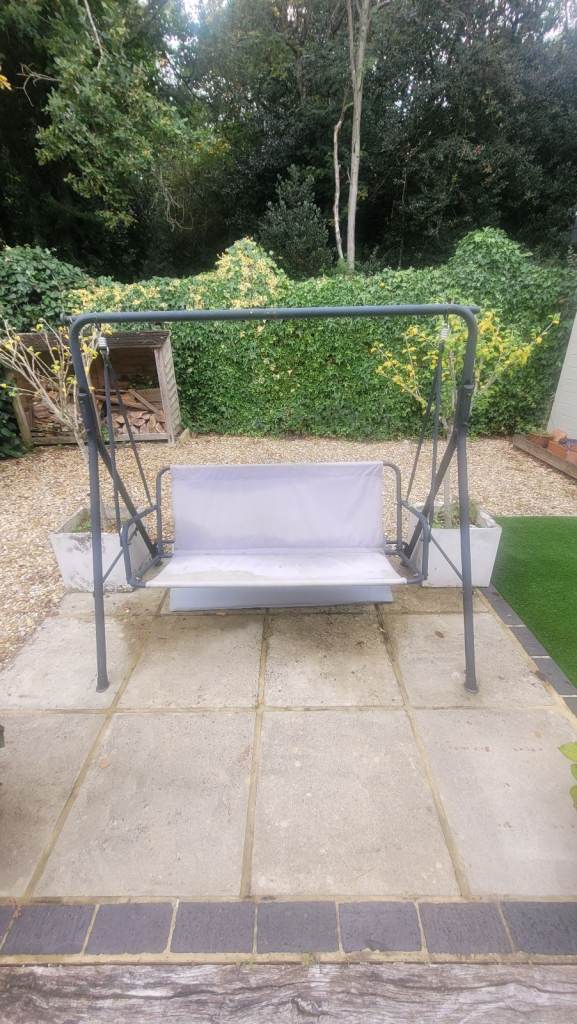 Free swing, needs a clean and a new cushion. Size: length 170cm incl seat 130cm, hight 150cm, width (depth) 110cm. Collection only