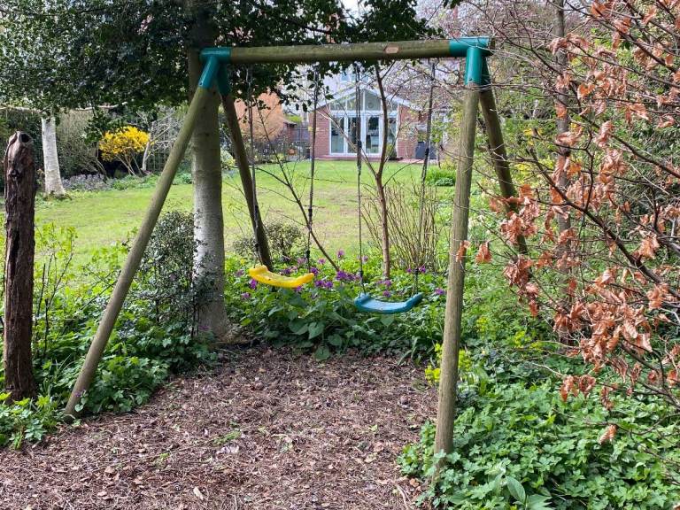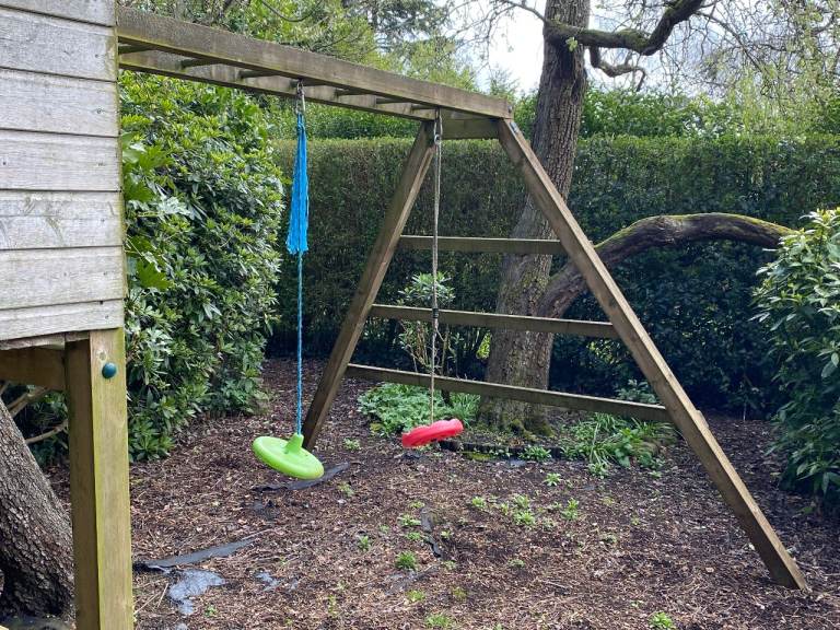 - 2 Swings - again free. Green due to the weather, but not concreted into the soil.