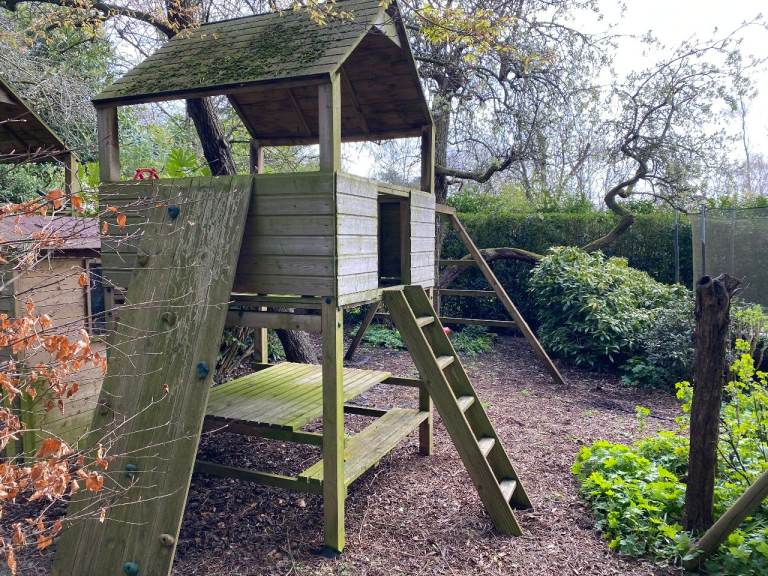 - Garden Tower Playhouse - one wooden tower with ladder, monkey bars, climbing wall and 2 swings. It's a bit green due to the weather and the posts are concreted into the soil. Free to anyone who wants to come, dismantle and remove (everything).