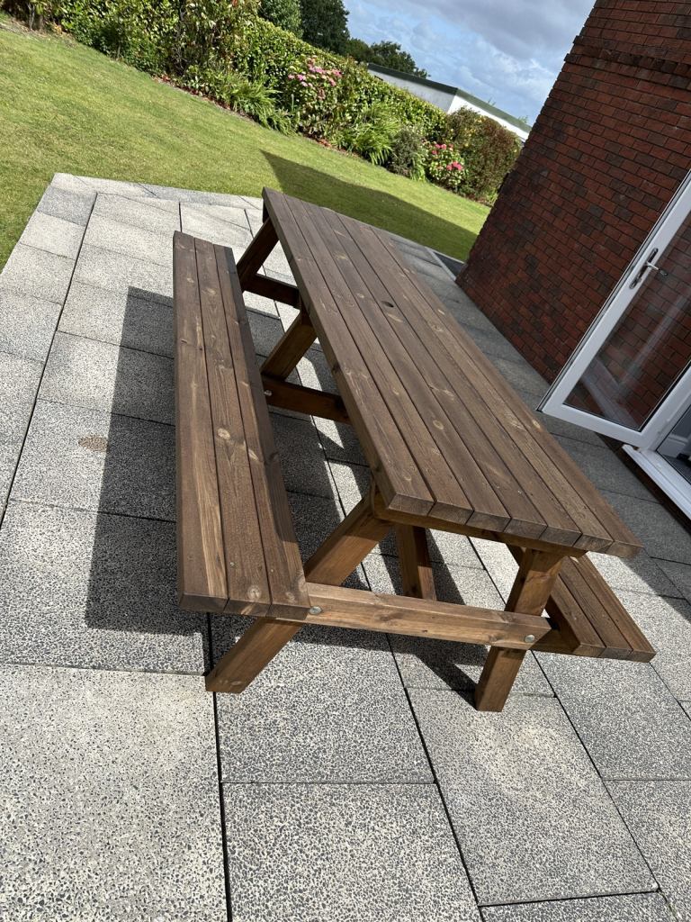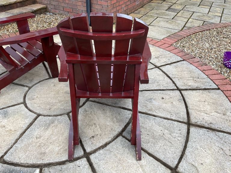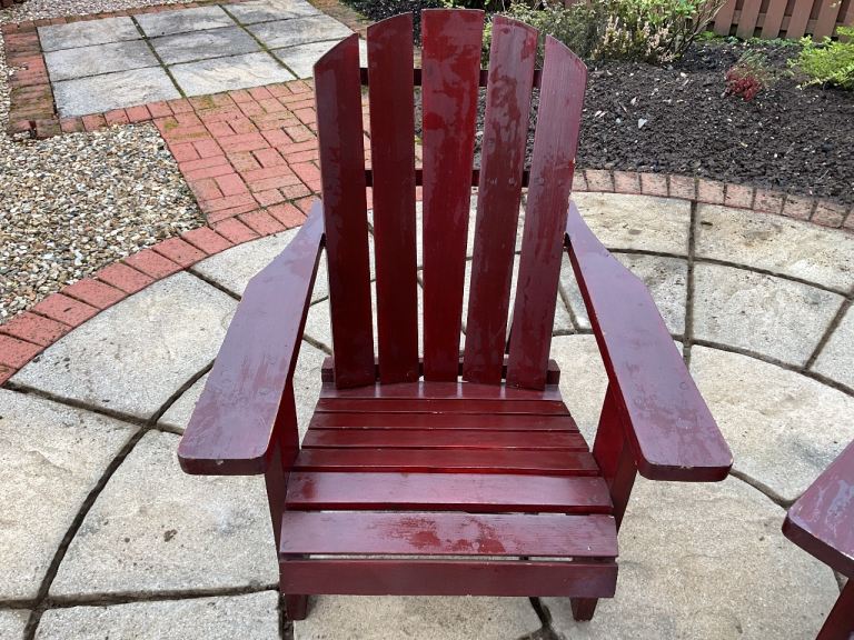 Very good quality and hard wearing wooden chairs for outdoor use. Previously Been painted with Dulux Mahogany oil based paint. Sadly no longer used and has been carefully stored in Garage. Will suit Spring and Summer weather coming up. Sold as seen, no refunds. Buyer to collect please. You are collecting 2 chairs. Preferably Van as very heavy.