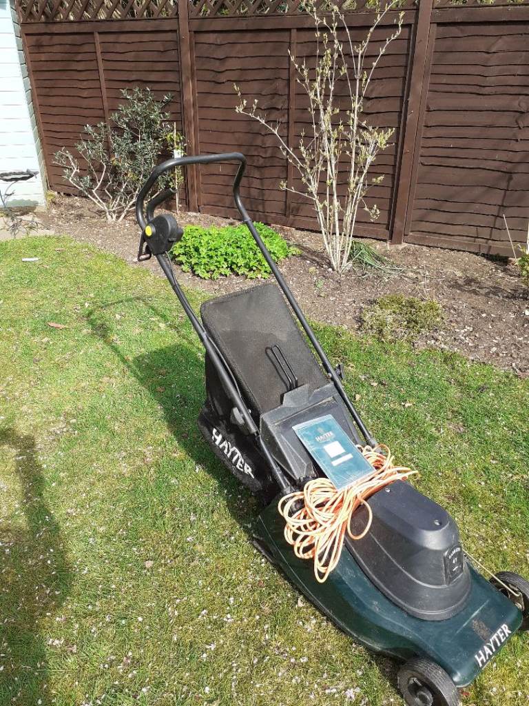 Hayter Electric Lawn Mower, with collasible handle, collapsible Grass box, long cable and manual. Fully working