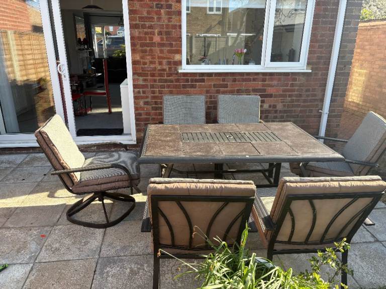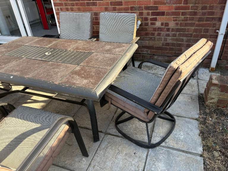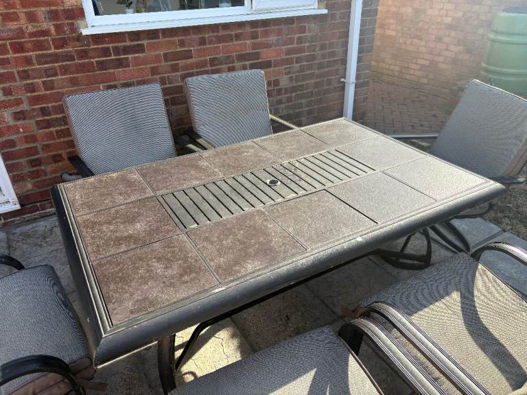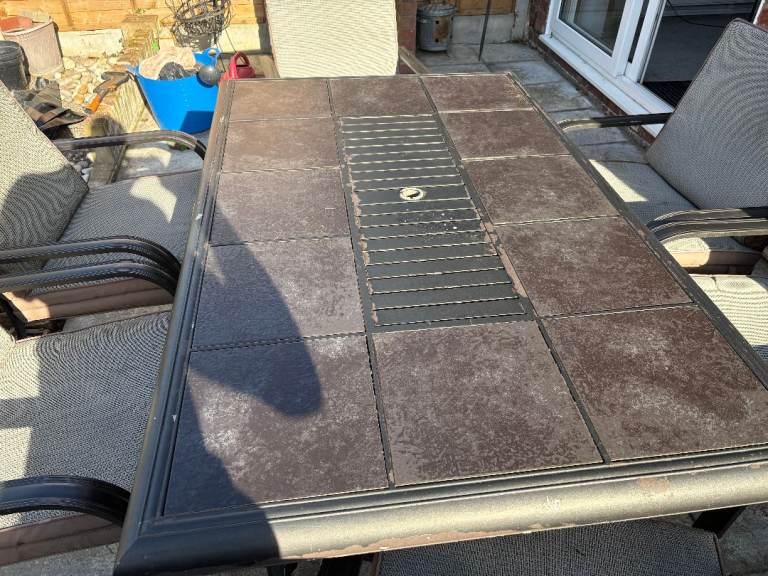 Posting for 10+ yearsLarge Tiled Top Garden Table With 6 Chairs Set