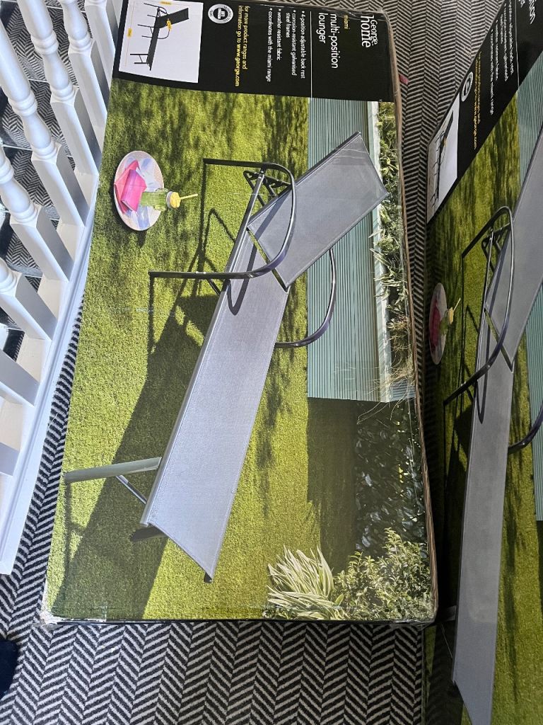 Multi position sun lounger - £40 each. I have 2. Currently selling in Asda for £52 each. Never opened still in box. Collection Breton hall Lisburn