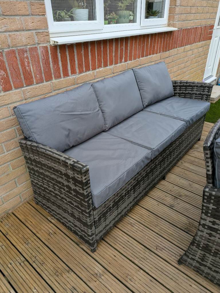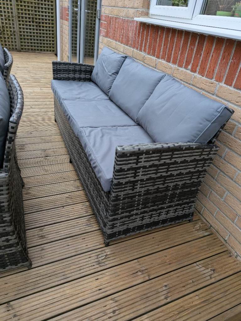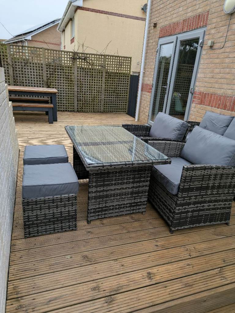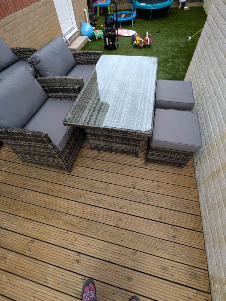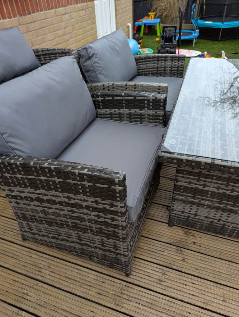 Two stools, two chairs and a glass topped table. All cushions. £250. If you want the sofa too I'll do the whole lot for 400.
