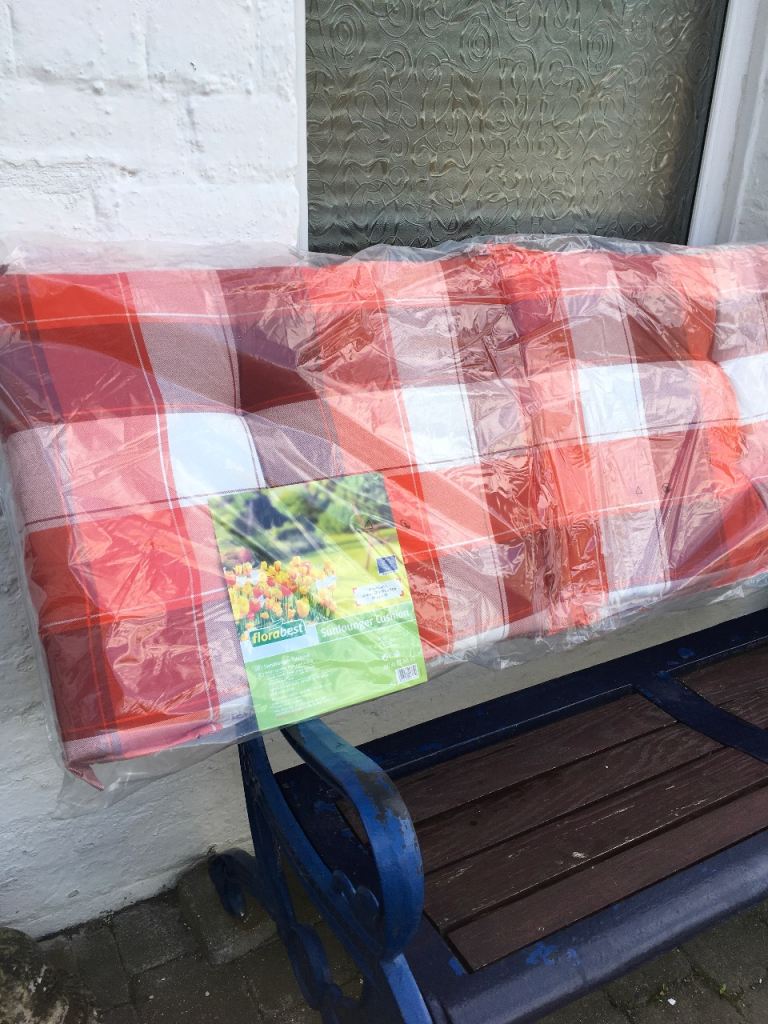 Sun lounger Cushion Pad. Quality 8cm deep cushion. Cover made from pure cotton. Optimal hold with stretch back strap and side cords. Fire resistant.