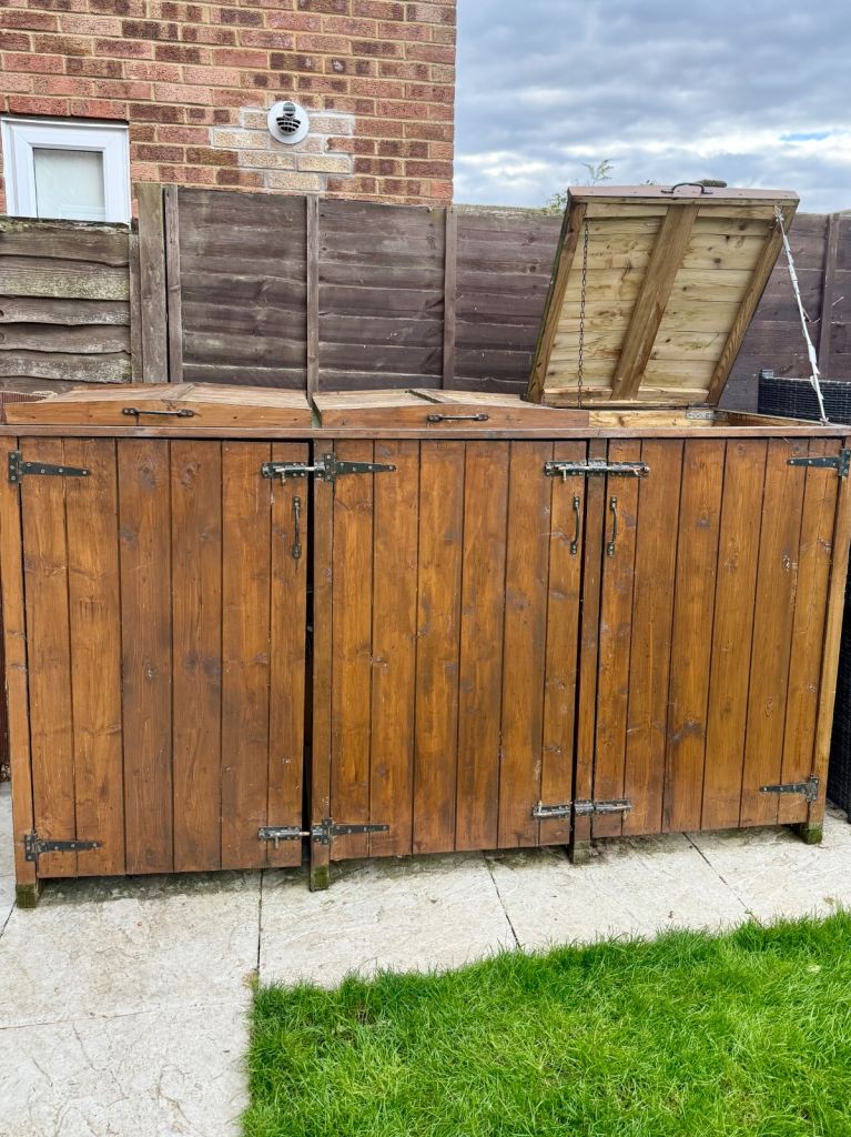 Posting for 3+ monthsTriple wheelie bin wooden storage cover.