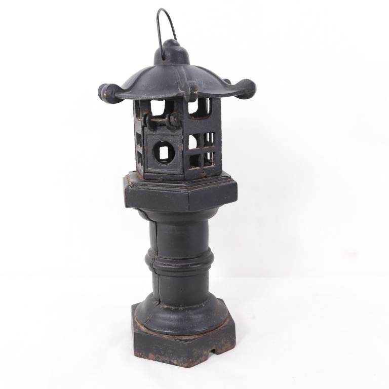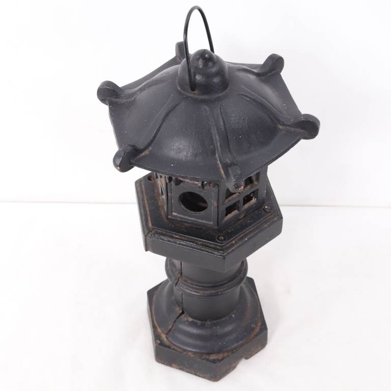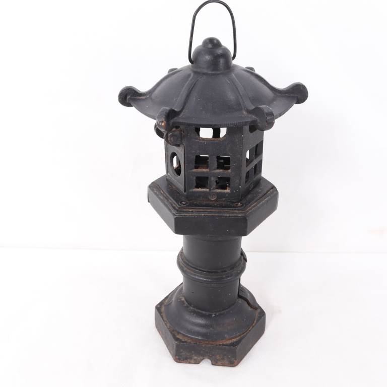 Vintage Cast Iron Lamp. Chinese Pagoda Style Tea Light Candle Lamp.