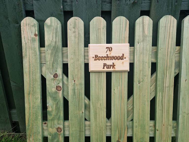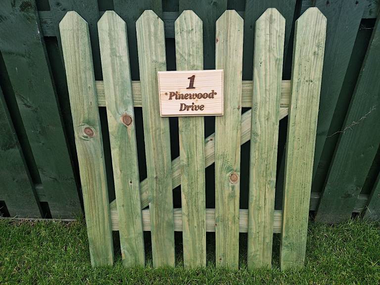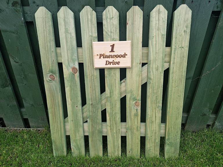 Enhance the uniqueness of your gate with a personalized touch. Each gate comes with an exquisite wood plaque, carefully engraved with a high-quality laser. With this personalization option, you can add a distinctive element to your gate, making it truly one of a kind.