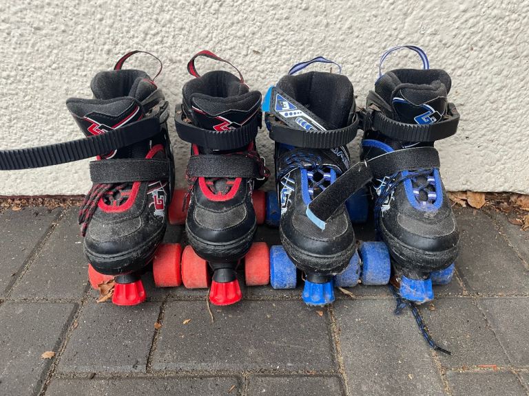 2 pairs adjustable roller boots. Size 30-32. £7.50/pair