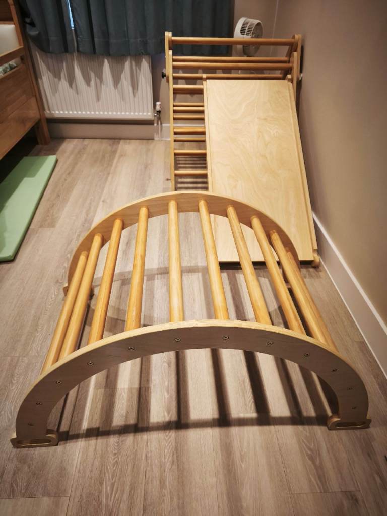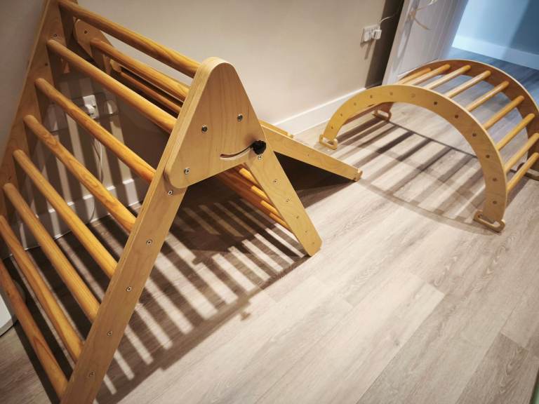 Climbing Frame for Toddlers - Wooden Triangle, Arch & Climbing Ramp for sell, only £60. Like new, always keep it indoor, my son never play much, super condition super strong for climbing. Welcome to collect from Watford, Hertfordshire
