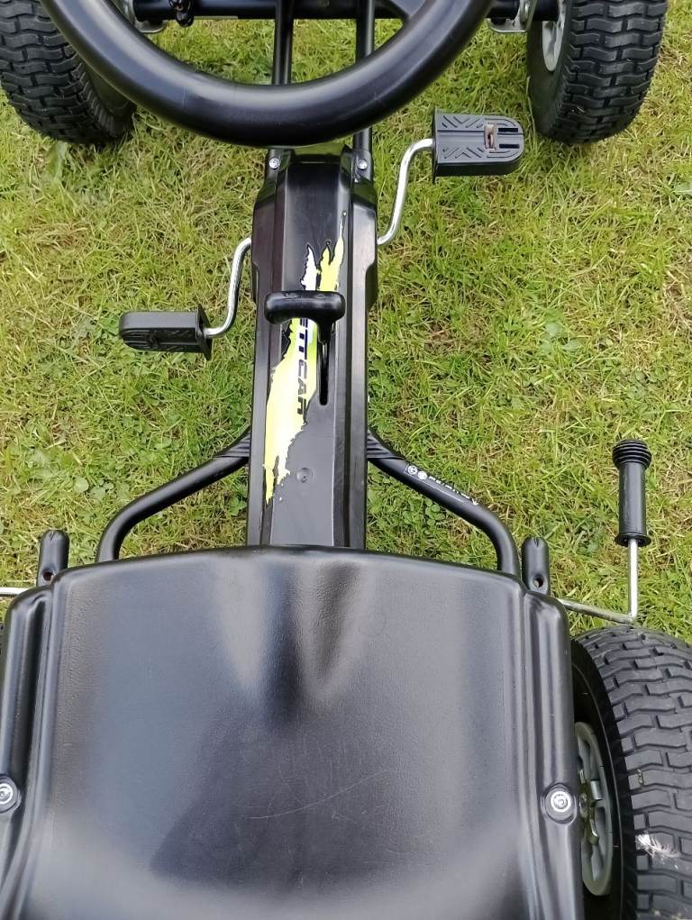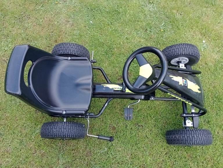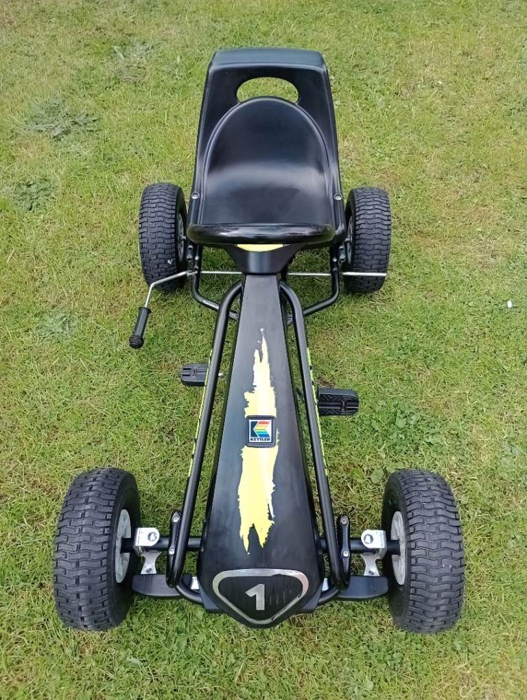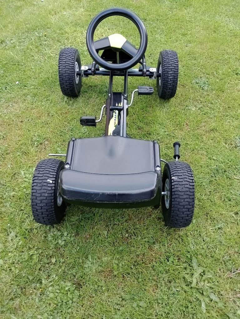 Used pedal go kart.For ages roughly 5-10 years.Adjustable seat.Inflatable tyres.Hand break.Dimensions (LxWxH):112x62x64