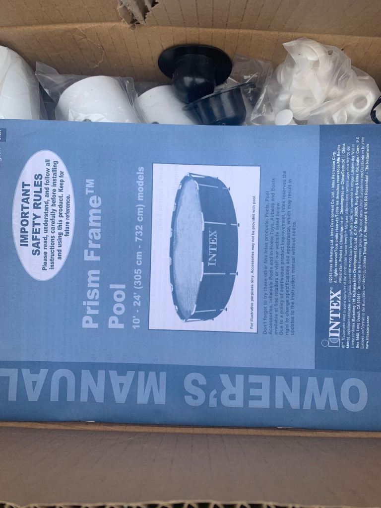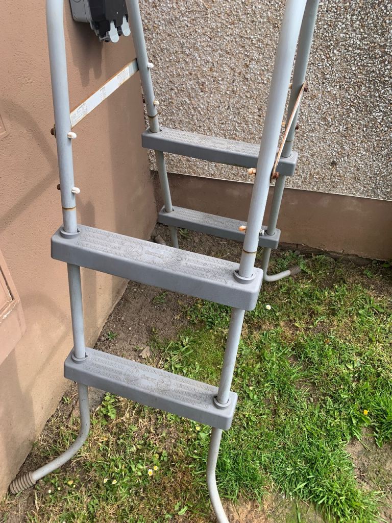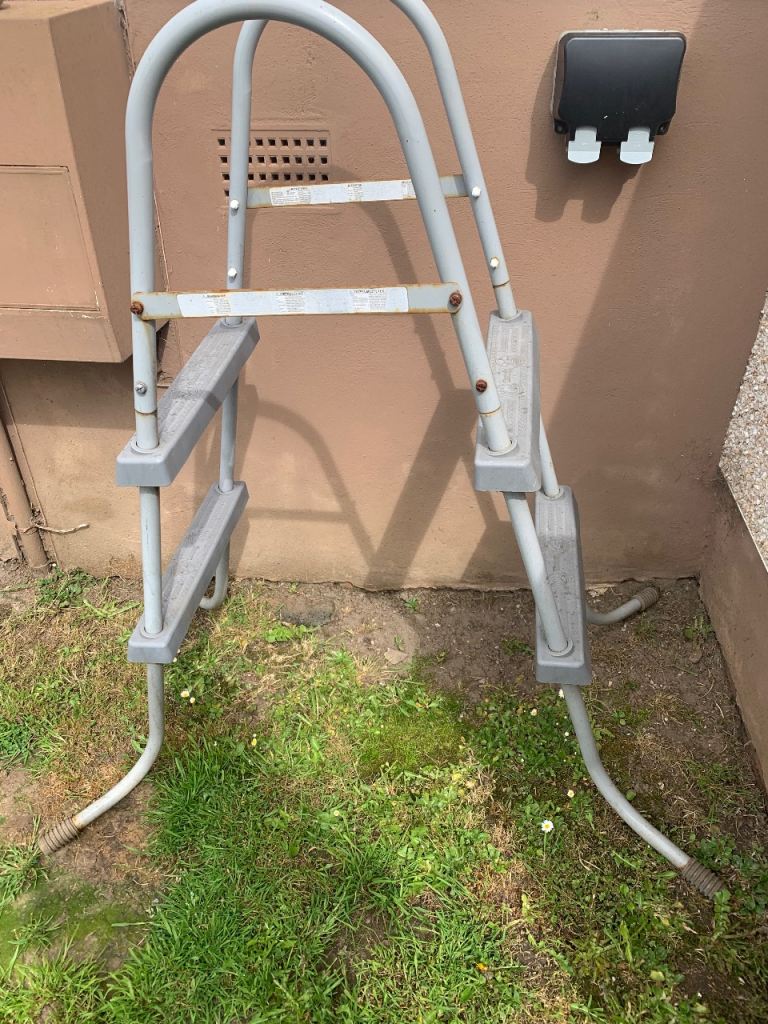 Intex 12 foot frame pool and ladders pool only used once but would need a wash as didn’t clean after use ladders are a bit rusty as been left outside but would clean up