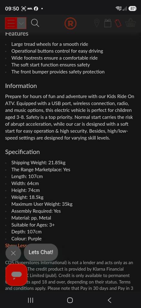 Features large treaded wheels, USB port, wireless connection, and radio for music.