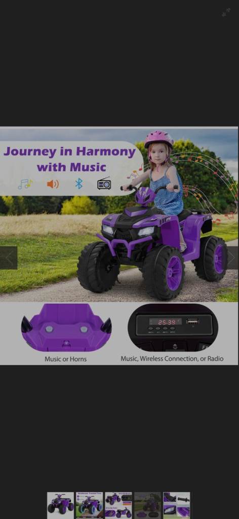 Kids electric ride-on ATV quad bike in vibrant purple, suitable for ages 3+.