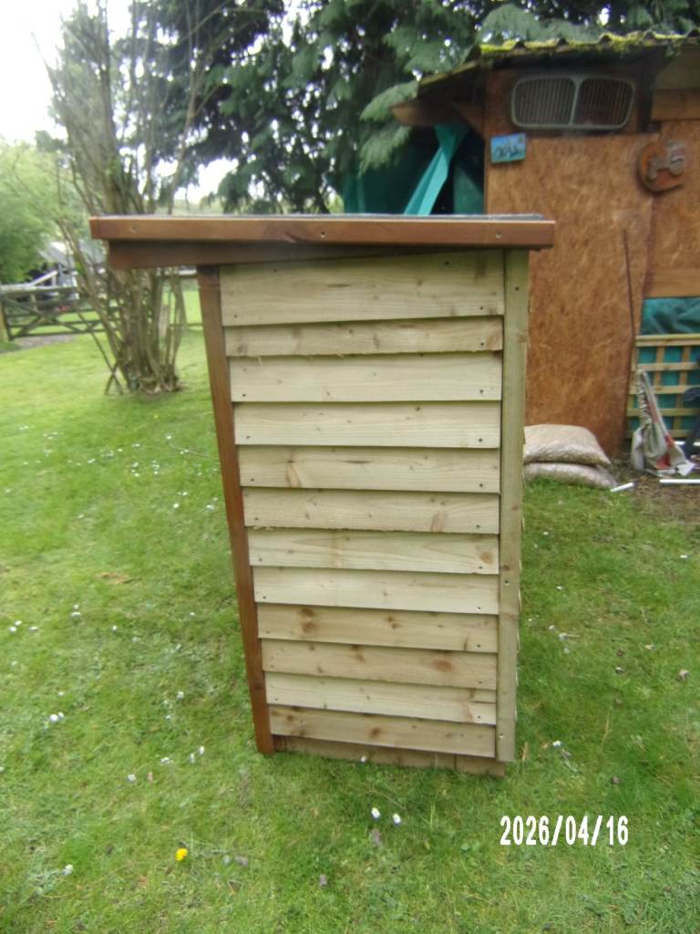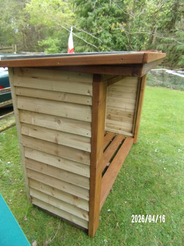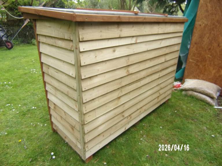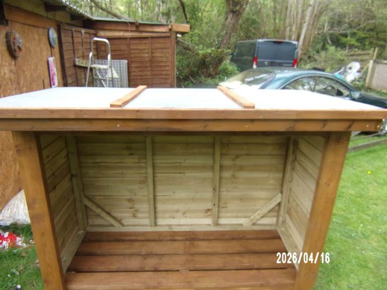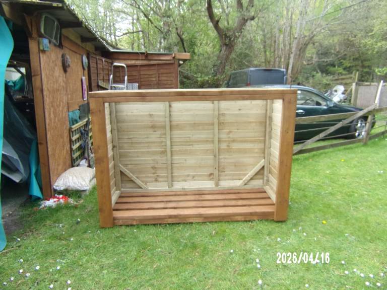 heavy handmade log store made using treated timber o/a size 1950 x 950 x 1420 mm inner 1700 x 600 x 1200 mm in six sections local delivery possible