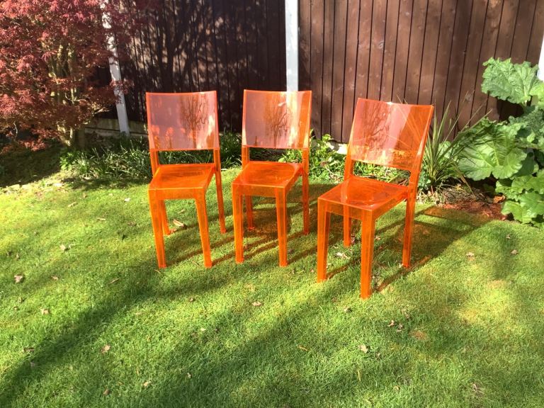 It's a practical grey colour that blends in well with most outdoor spaces.