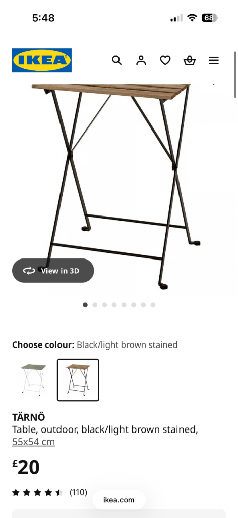IKEA TÄRNÖ outdoor folding table (black/light brown stained).